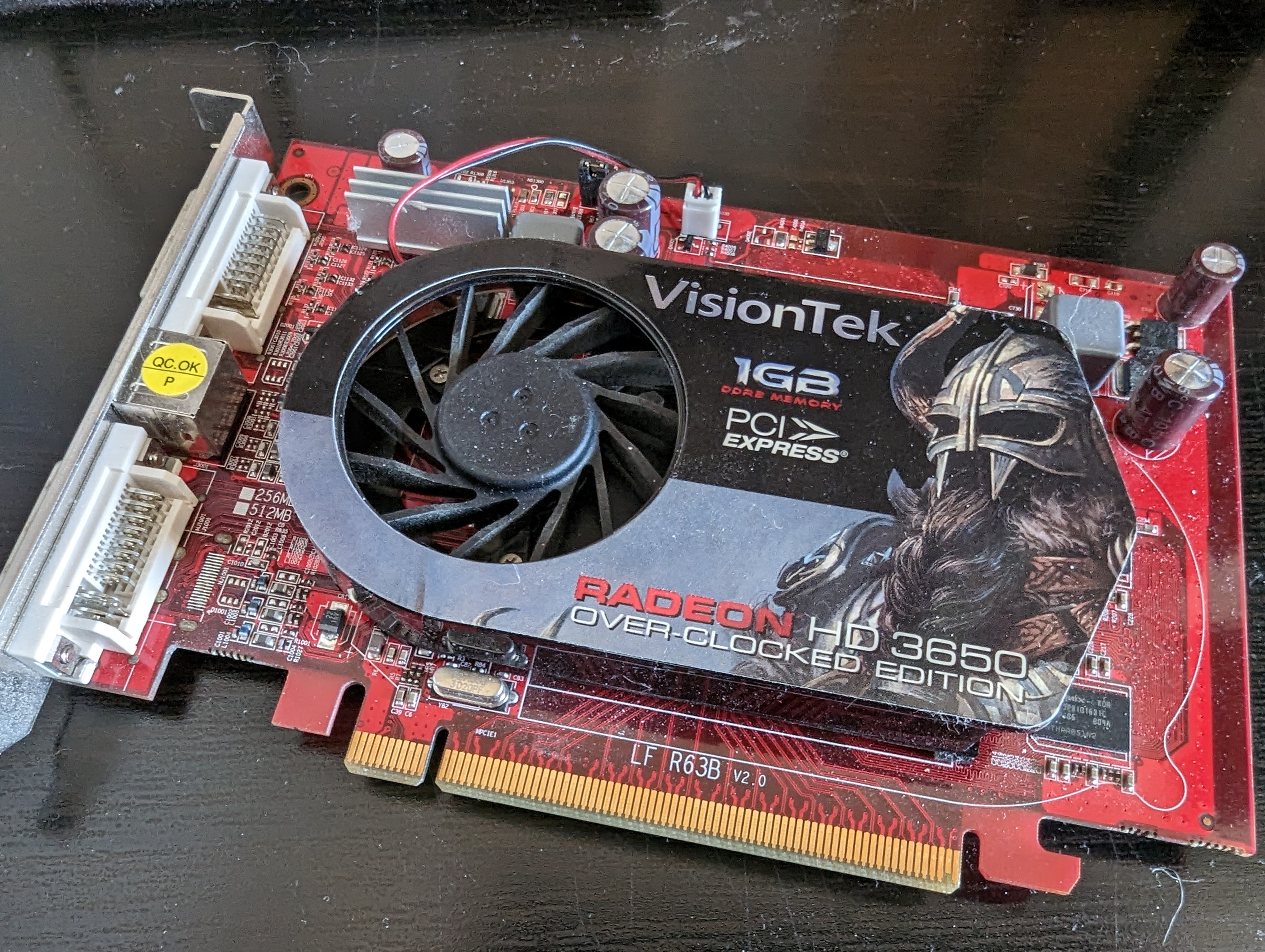 - GPU: ATI Radeon HD 3650 1GB PCIe (2 DVI)