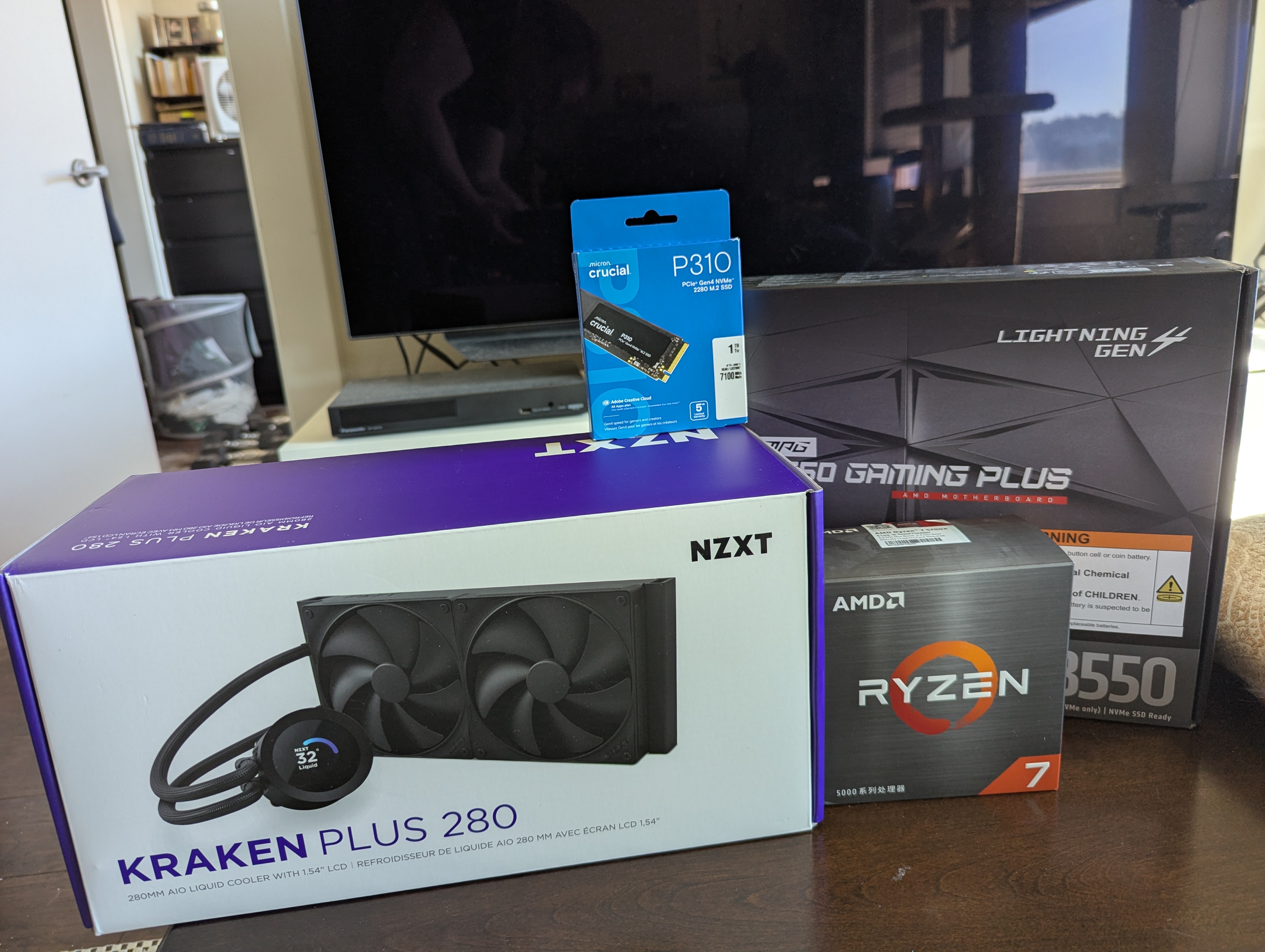 Basically, a bump in the CPU and motherboard, an AIO cooler (always wanted to try one), and, as always, more storage.