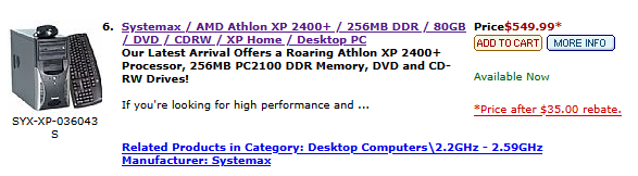I deleted all my old receipt and “your package is being delivered” emails that I had originally referenced to find out these old computer specs. Generally a good idea, but in writing this, I wish I hadn’t, because I was very sloppy in my data gathering. But then I had an idea to check archive.org and was VERY surprised to learn just how much of tigerdirect.com was archived on that site. It’s WAY more than I thought it would be. Even though I couldn’t access the page itself, I managed to find my computer (or the closest to it) on a listing.