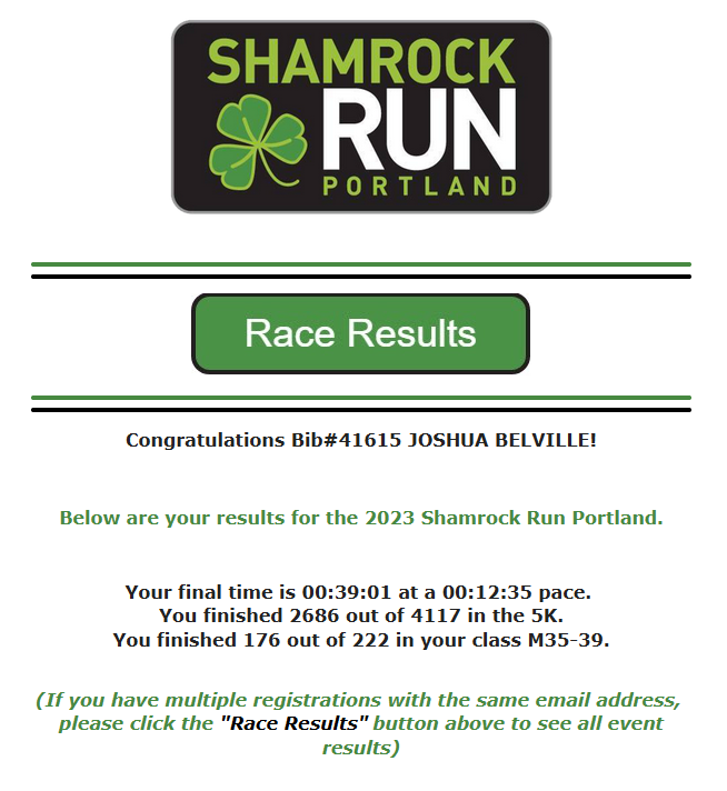 If you are interested in a deep dive on my time at the 45th annual Shamrock Run, feel free to check out ye olde blog, where I post about every race I run as well as other stuff that might be boring, I don’t know, who knows anymore.