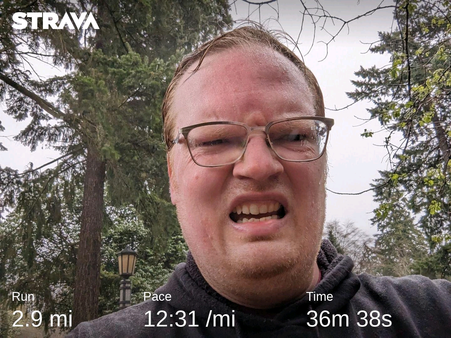 Laurelhurst is hilly. Much like Lacamas, the start of the race was uphill, but it was a much longer uphill. We did two laps around the course, up and down hills, while it rained constantly on us. It rained so goddamn much that I had to take my earbuds out about midway through lap 2 because the rain was getting into my ear canal and making the earbud thingy slippery. Ain’t no way I’m losing my Pixel Buds! Or my hearing to an ear infection from rainwater being stuck in my ear canal!