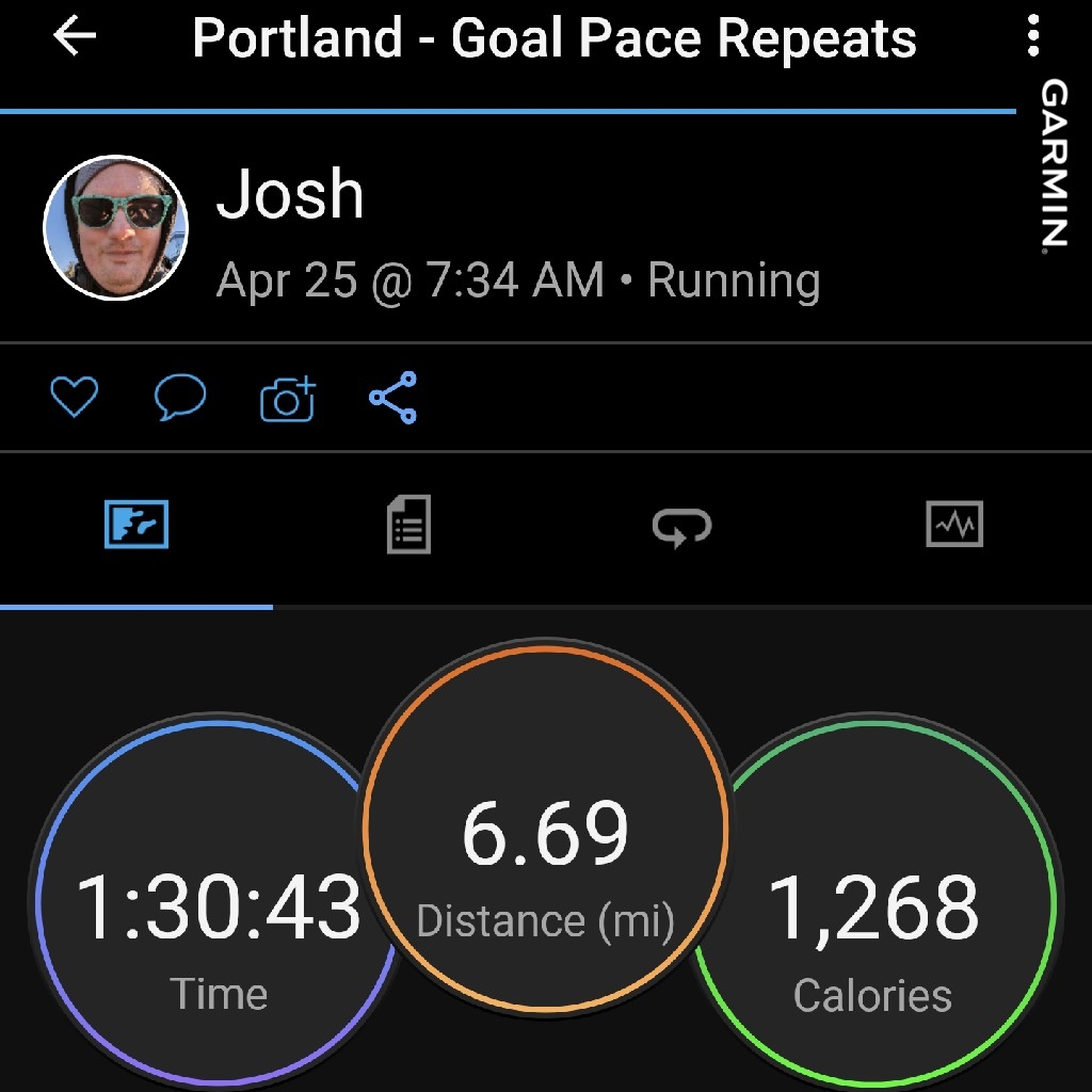 I feel great. This is my long run, technically (more on that in a second), and being able to run/walk over the 10k distance without feeling it too much is awesome. Plus, according to Garmin, my 10k time for this workout alone was 1:21:53, which means I’ve got 1:15 in the bag and will likely have to move my Goal Time up a bit. We’ll see how the rest of the week progresses.