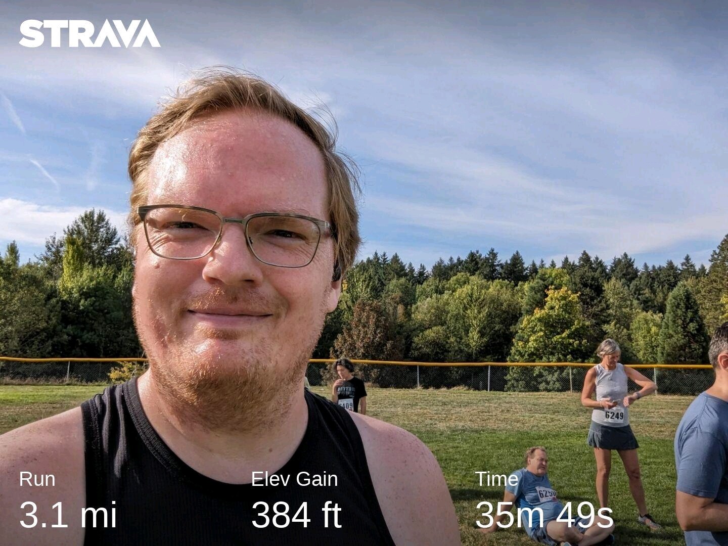 Busy weekend! Just a quick parkrun overview: official time was 31:03. Didn’t really have a plan per se, but decided to give it a good ol’ college try. My ultimate goal was to run kind of hard but not hard enough to completely destroy my body for the Sunday 5k. And in the end it worked out; my average pace was 10:00/mi and I actually achieved negative splits due to the first half being uphill. Once I hit the turnaround I decided to really hoof it and see what I could do going downhill. So 10:19, 10:01, and 9:50 were my mile paces, and once I hit the last bench (my little milestone post which also happens to be about .10 of a mile to the end I think), I pushed myself hard. 8:11 was my pace at the end. Pushing but not too much.
