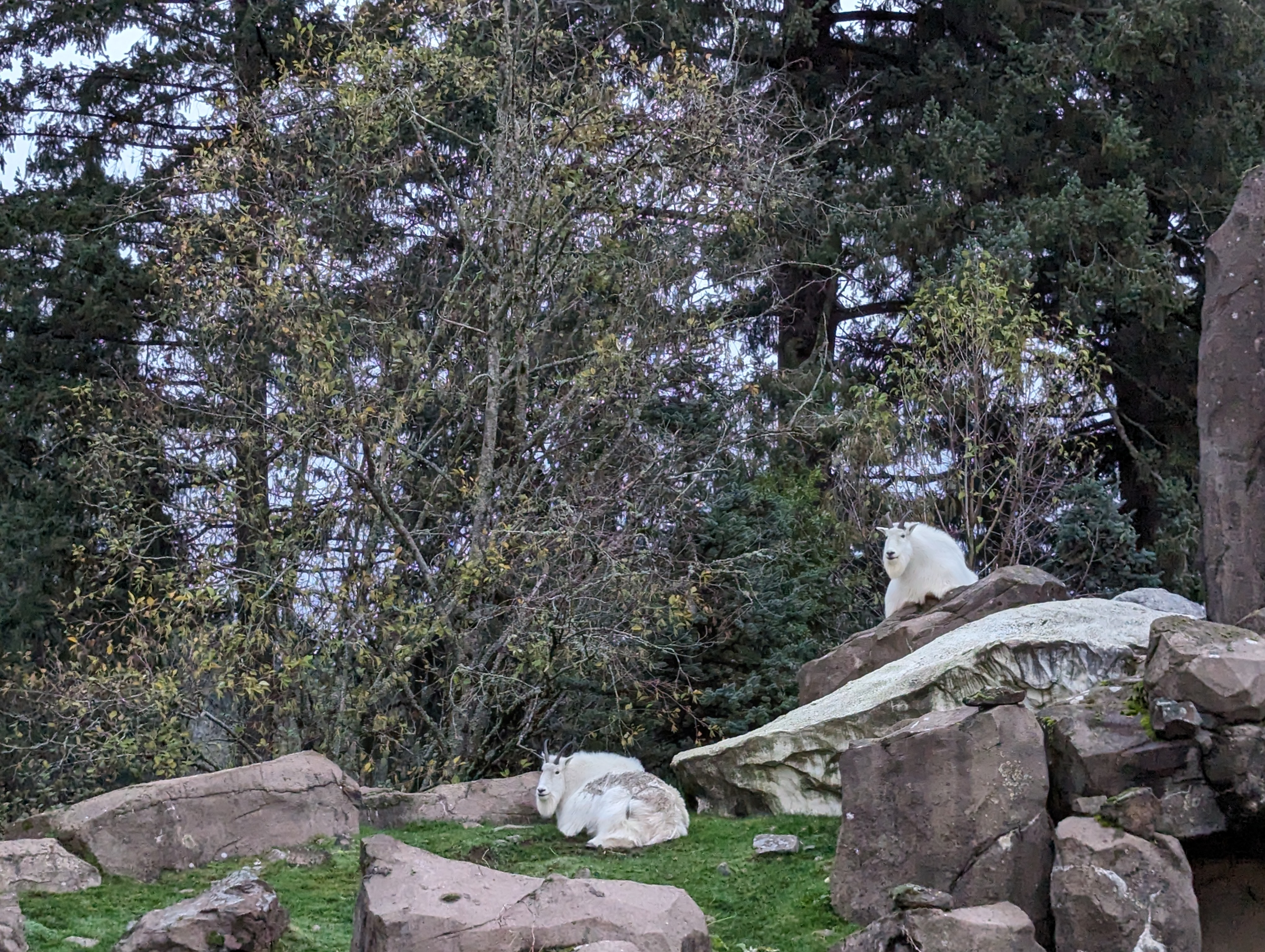 The second one was the next morning and was the ORRC Turkey Trot. This was a four mile run at the Oregon Zoo. It started rather abruptly, which was very fun, and the first half was very downhill, with the second half running up that hill (cue Kate Bush here). It was tough, especially after running fast the night before. But we did get to see some mountain goats chilling out at the entrance. My time was 50:31 but it was a fun run and I was dying going back up the hills.