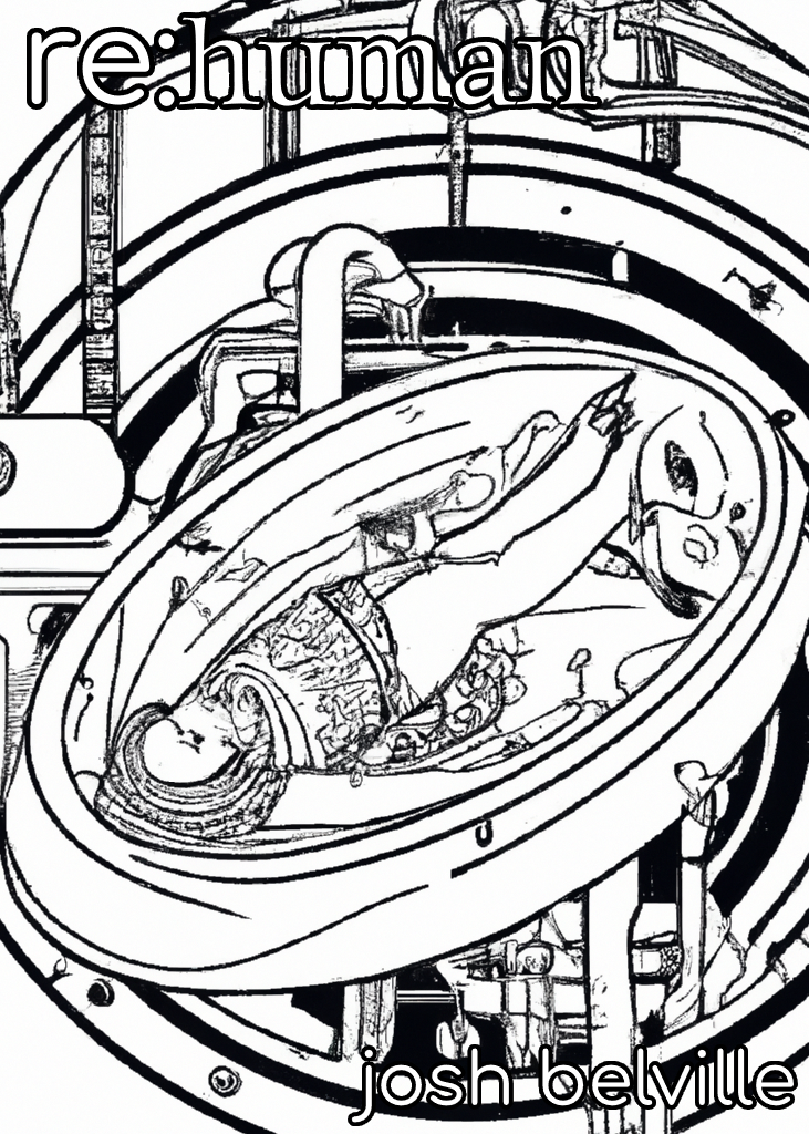 This year I’m expanding on an idea I’ve had for a few years now, about a human created by robots long after humanity has been extinct. The current title is re:human (see, cause it’s re(garding) humanity, and it’s also re(making) humans, you get it? eh? eh?). I thought it would be interesting to try and make the cover art using Dall-e 2: