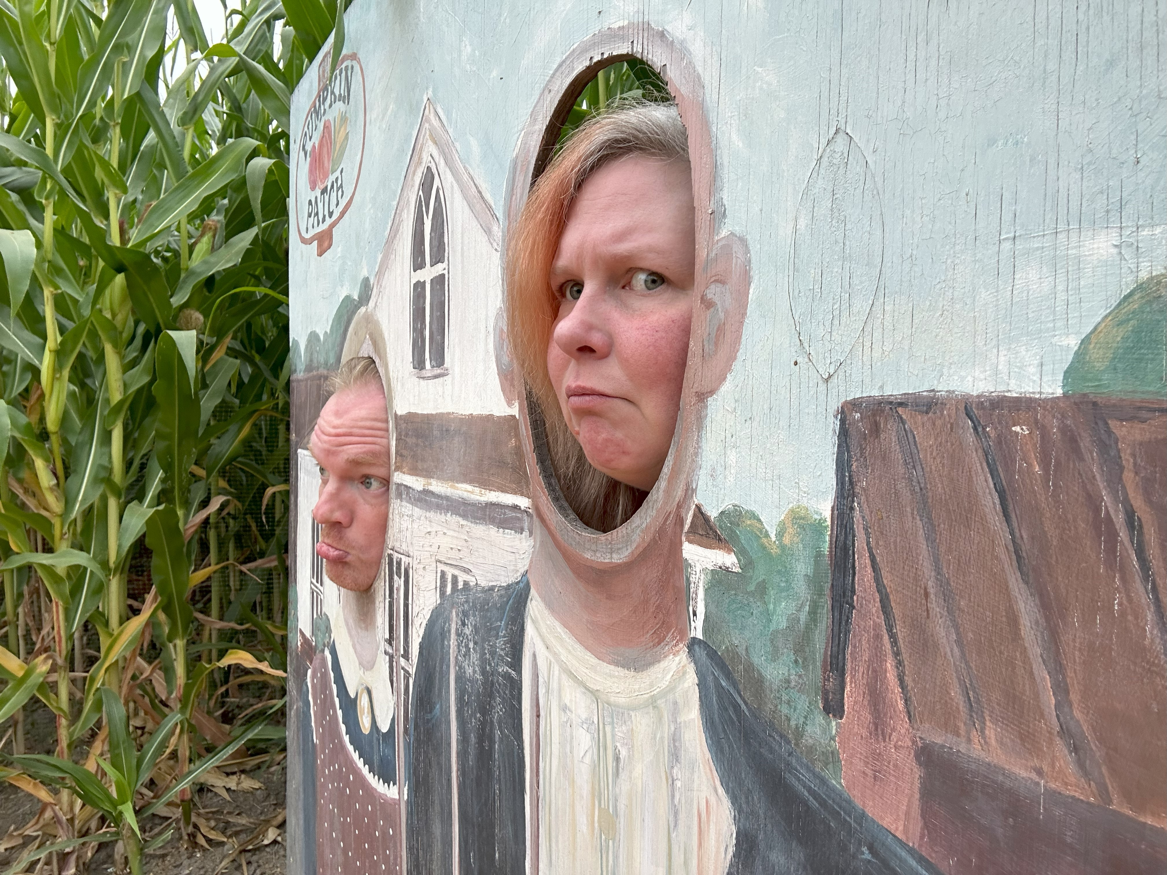 We tried to take creepy photos of ourselves in the corn: