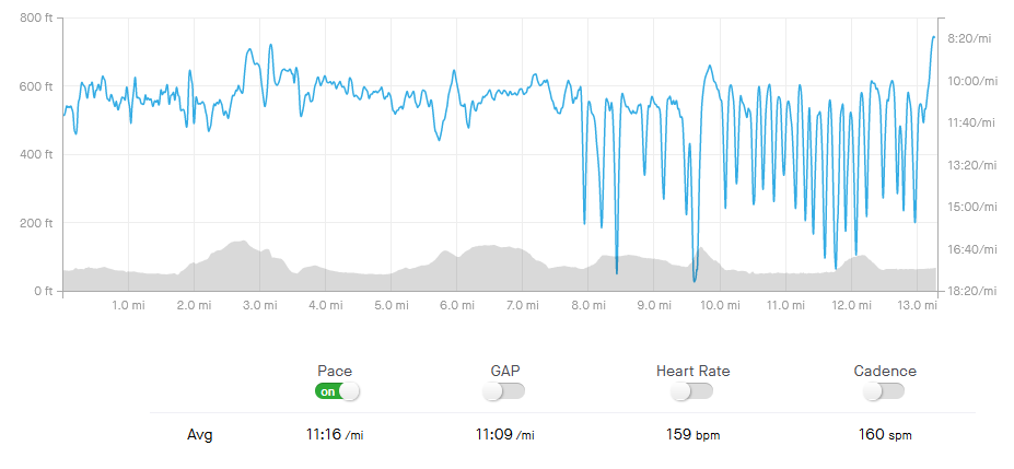 My chip time was 32:33 but that was for 3.34 miles, which the course absolutely is, because I double checked on Google maps. Regardless I really felt good on this run and was going at a nice clip for the first two miles.