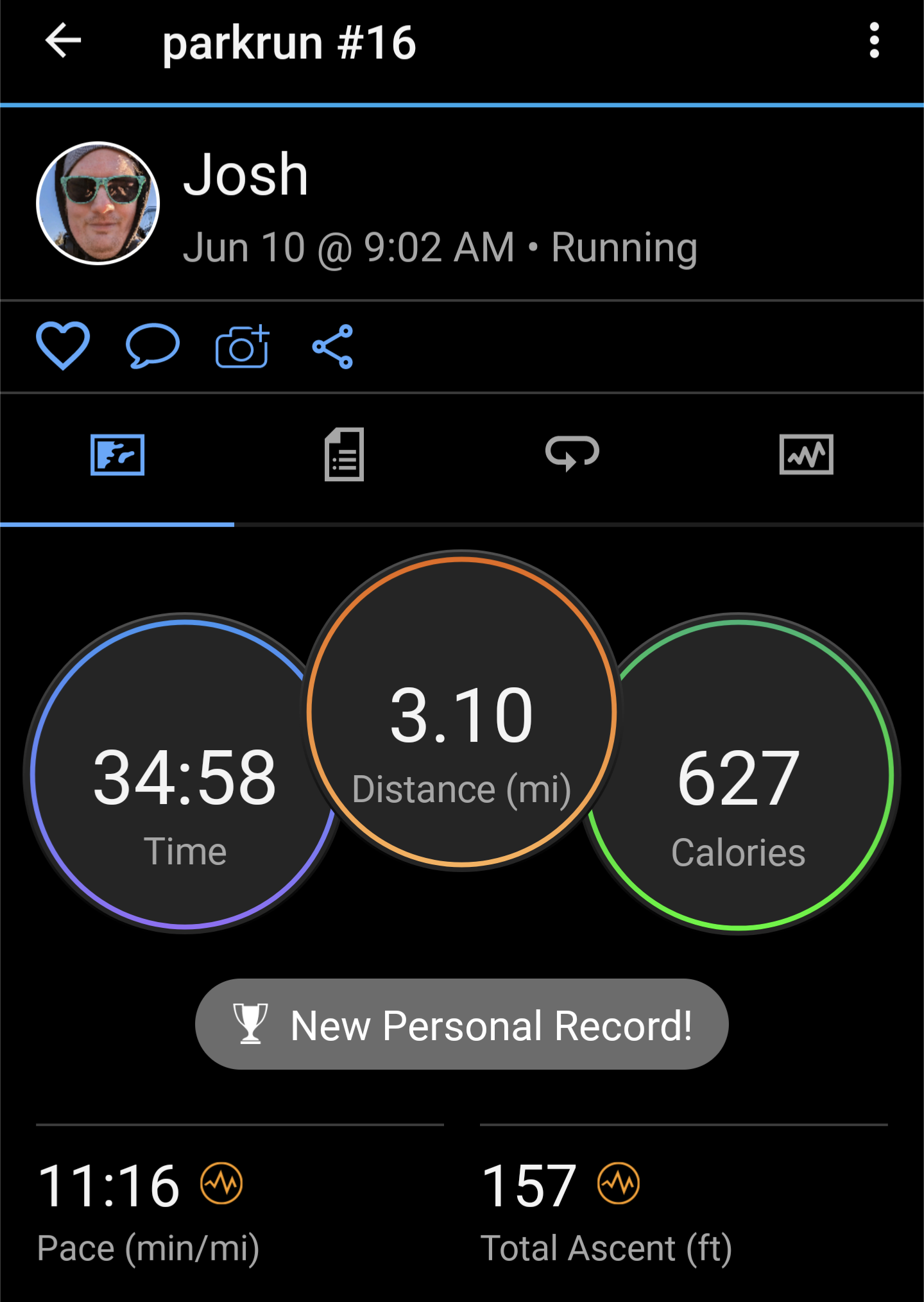 Pace: 11:31/mi (or 11:51/mi, more on that later)