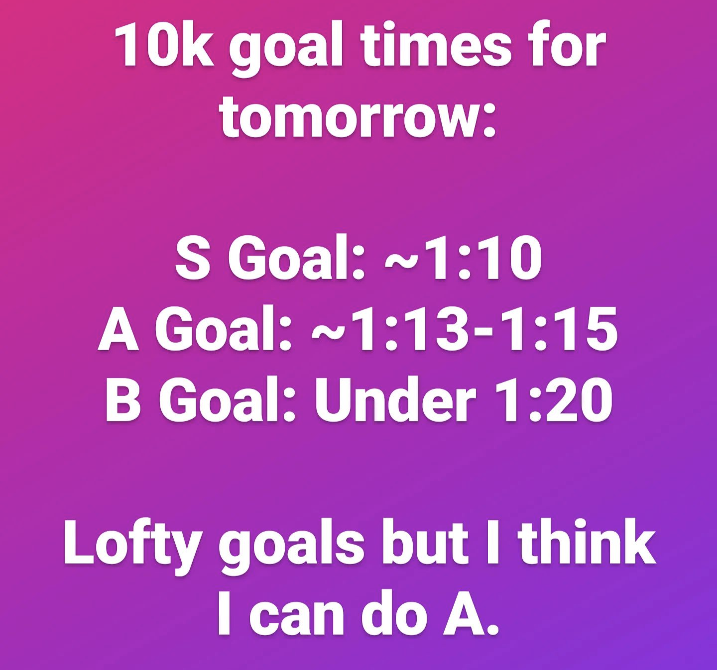 I posted goal times (for the 10k) on my Instagram: